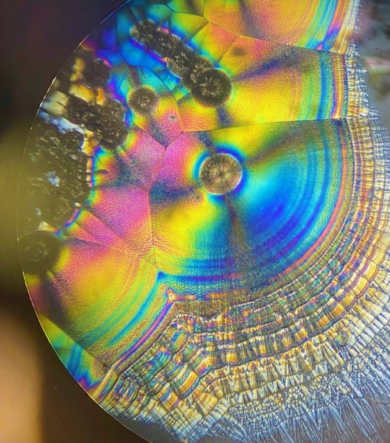 It has been refreshing to start the year with a new study design in Year 11 as it has been an opportunity to rethink how we teach the foundational concepts and the key science skills. We had noticed that our students were less confident in their practical skills as a result of missing many of the experiments they would have normally completed in Year 8 and 9. Skills such as filtering solutions, or setting up the digital temperature probes, normally practised many times in the lower year levels, are now being taught for the first time. So with this in mind we have designed an introduction assessment task which integrates the beginning concepts in Chemistry with making slow growth and fast growth crystals. And I have to say I am loving the more hands on approach to tackling some of the challenging concepts of periodic trends and intermolecular bonding. We are only taking our beginning steps in designing this project, but I look forward to sharing our ideas at a future conference. I leave you now with one of our first pictures of the birefringence of Vitamin C crystals; an image taken with a hack version of polarimetric microscopy at 400x magnification.